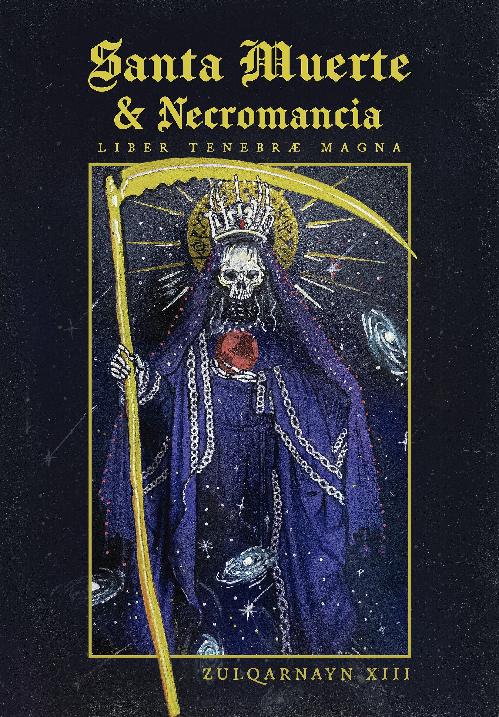 Escrito por Zulqarnayn XIII, mexicano, praticante da via sinistra e profundo conhecedor do tema, Santa Muerte & Necromancia - Liber Tenebrae Magna é uma obra que ensina os fundamentos dessa devoção, trazendo toda a parte história e folclórica, as práticas que vão desde montar o altar e consagração da imagem até rituais de comunhão e feitiços práticos voltados às necessidades comuns do dia a dia, orações e invocações, enveredando-se até por temas controversos e pouco falados, como nuances vampíricas com Santa Muerte. Apesar do culto popular se fundamentar muito no sincretismo cristão, essa obra vai no sentido oposto: os fundamentos do culto se alicerçam em antigas divindades e cultos pré-hispânicos, sendo o grimório perfeito para aqueles que não desejam misturar elementos cristãos em seu culto, voltando-se para a fonte basilar que se firma na noite e na necromancia.